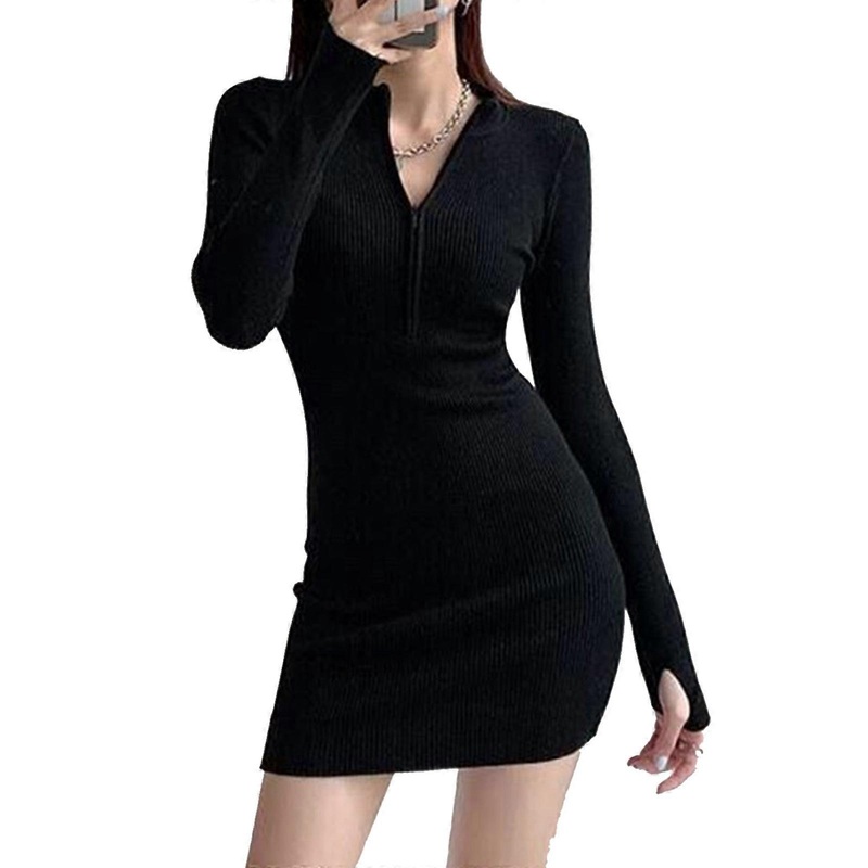 Description Features: brand new and high quality This club dress is-made of high-quality polyester materials, comfortable and breathable to wear. This long sleeves dress is-featured with stand-up collar, wrap bodycon style and front zipper design, perfect
