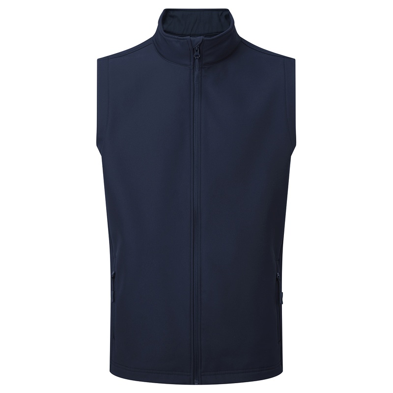 A men\u0092s two-layer softshell gilet carrying Premier\u0092s Windchecker\u00ae? trademark for wind and water resistance through the fabric. Made with 100% recycled polyester with a bonded fleece inner layer, this zip-through softshell bodywarmer features