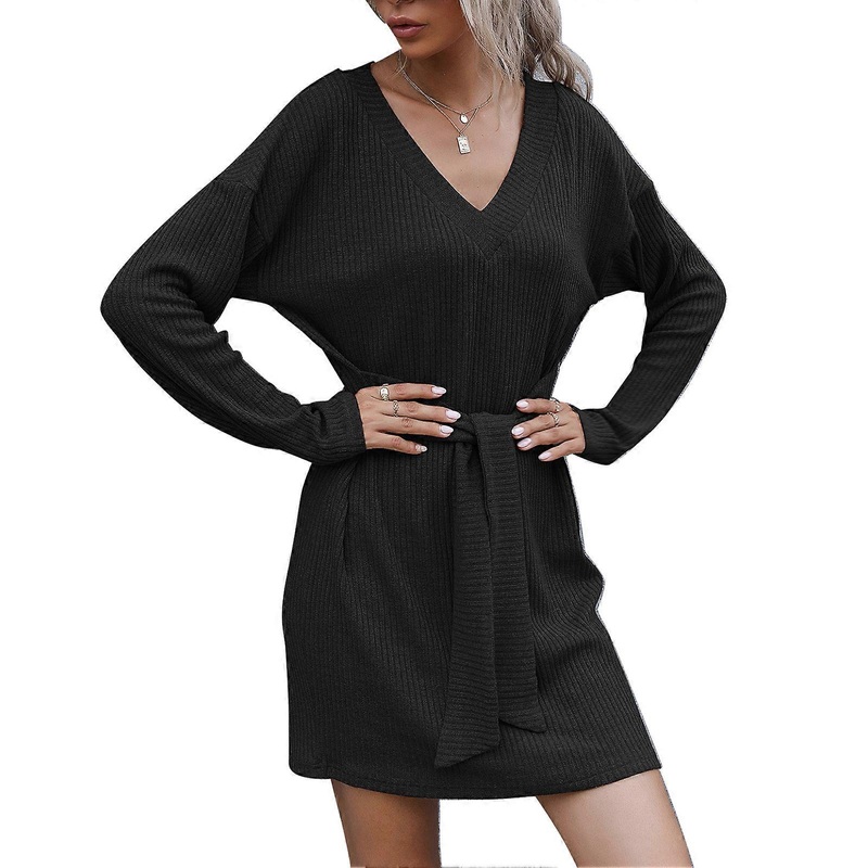 Item Type: Woman Knit Sweater DressMaterial: 65% Polyester and 35% CottonWashing Guide: Machine Wash, Do Not BleachStyle Features: Simple V Neck, Long Sleeves, Strappy Design, Simple Knitted Sweater DressApplicable Situations: Home and Leisure, Daily Life, Work, Shopping, Office, School, Work, Business, Family, Vacation, Holiday Sleep, Dating, Beach, Indoor and Outdoor ActivitiesProduct Size: S: Chest: 96cm/37.80Inch, Length: 86cm/33.86Inch, Sleeve: 48cm/18.90Inch, Shoulder: 57cm/22.44Inch, Waist: 90cm/35.43InchM: Chest: 100cm/39.37Inch, Length: 88cm/34.65Inch, Sleeve: 48.5cm/19.09Inch, Shoulder: 59cm/23.23Inch, Waist: 94cm/37.01InchL: Chest: 106cm/41.73Inch, Length: 90cm/35.43Inch, Sleeve: 49.25cm/19.39Inch, Shoulder: 62cm/24.41Inch, Waist: 100cm/39.37InchXL: Chest: 112cm/44.09Inch, Length: 92cm/36.22Inch, Sleeve: 50cm/19.69Inch, Shoulder: 65cm/25.59Inch, Waist: 106cm/41.73Inch
