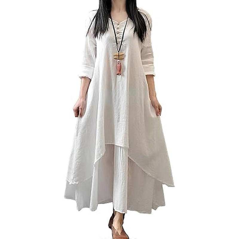 Made from fine fabric, comfortable to wear.Feature Points:Made from fine fabric, comfortable to wear. Side split, layered and irregular hemline design. O-neck, half sleeves and ankle-length style. Cut with a loose fit.Improved version with suitable bust and sleeve width. Suitable for Casual, Party, Vacation, Date, Daily Wear and other occasions, Perfect for Spring and fall.