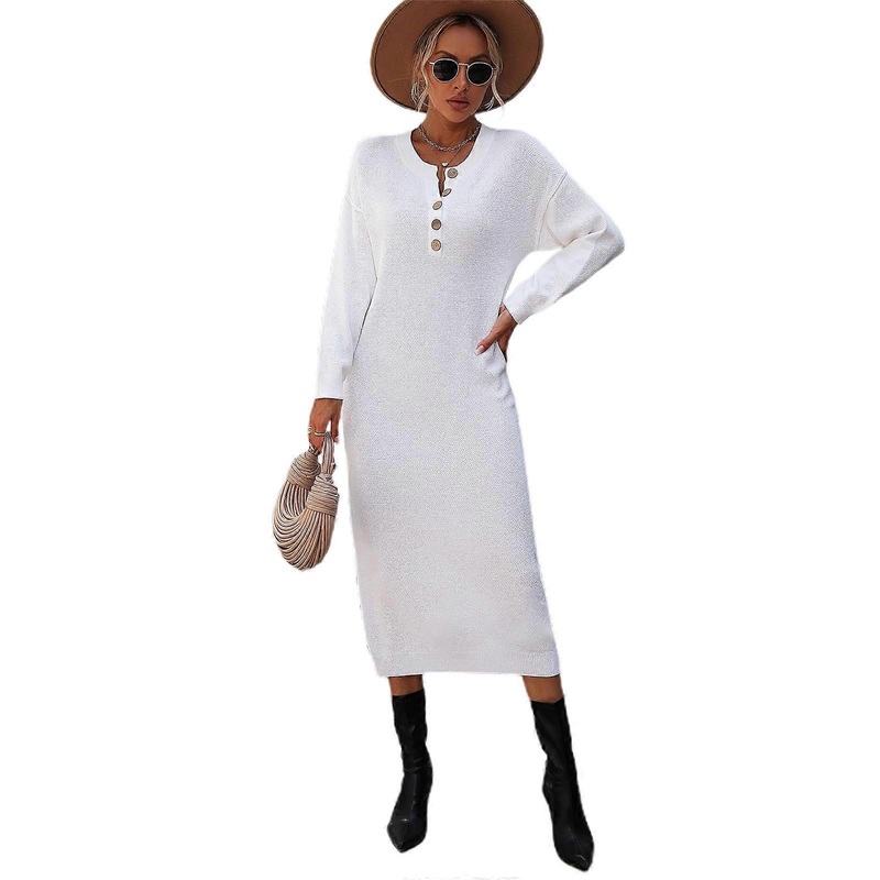 Features: Design,women winter fall casual sweater dress,long sleeve,crew neck with button down,ankle length,sweater dress,tunics sweaters.