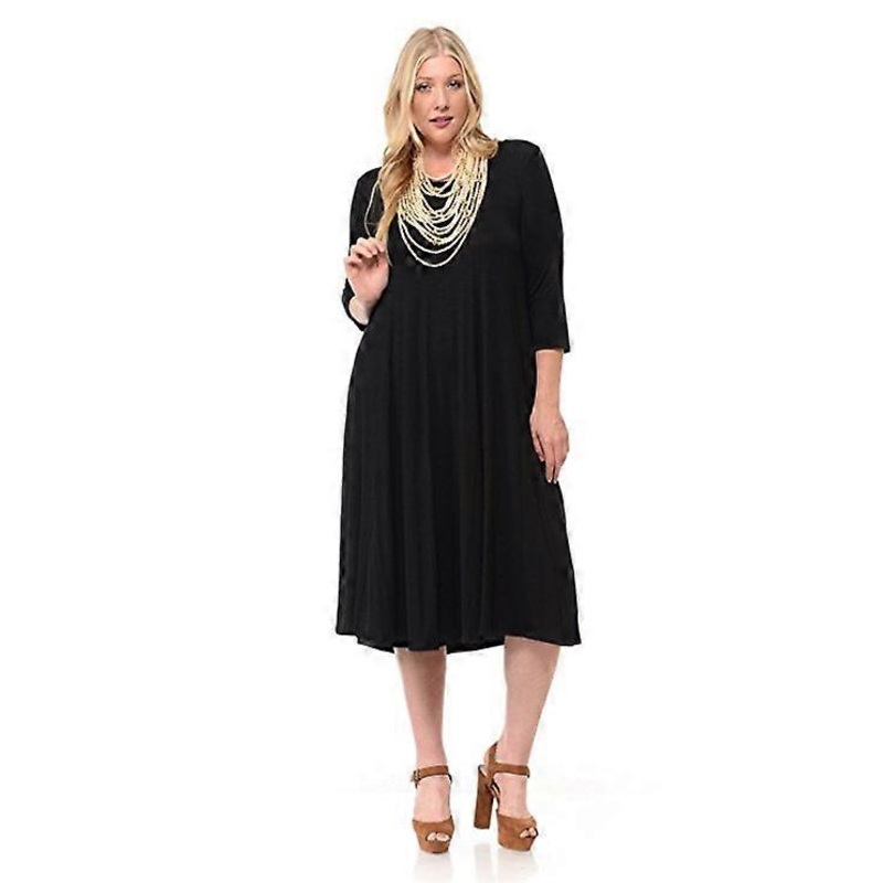 Loose Fit, Casual Plus Length Knee Length Dress, Plain A-line Pleated Swing Dress, Round Neck, Plus Size T-Shirt Dress, Plus Size Summer Dresses for Curvy WomenThis plus size shirt dress is made of rayon /spandex fabric, which is soft, stretchy, breathable and no see-through, supplying you cozy and skin-friendly wearing experience.This crew neck short sleeve sundress to pair with leggings, skinny jeans, necklace, handbag, belt, knitwear, heels or sandals.Suitable for Casual / Party / Work / Dating / Beach / Holiday / Wedding / Home/ Shopping etc. Good for Spring and SummerThese dresses feature a fluid swing style that enhances the overall aesthetic, while also covering tummy imperfections well; they’re the ideal pleated dress for women who like a floaty feel and like to make a statement with their outfits.