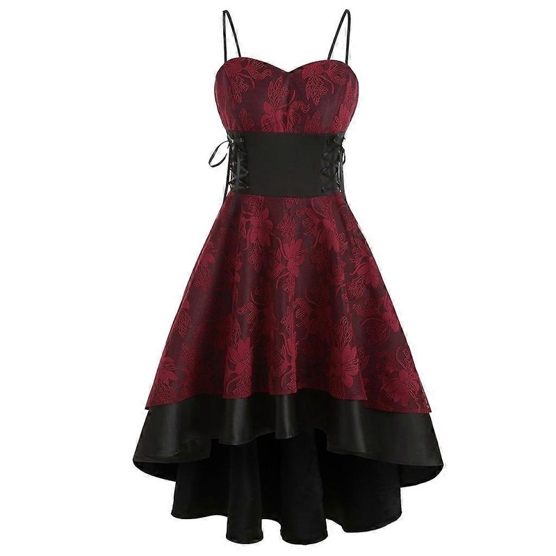 This lace dress provides a beautifully feminine silhouette, as well as incredible elegance, with its high low hemline which helps to show off your slim calves. Additional strap detail appears in the front adds decorative visual detail, and lace-up at the sides offers a chance to show off your slim waist.