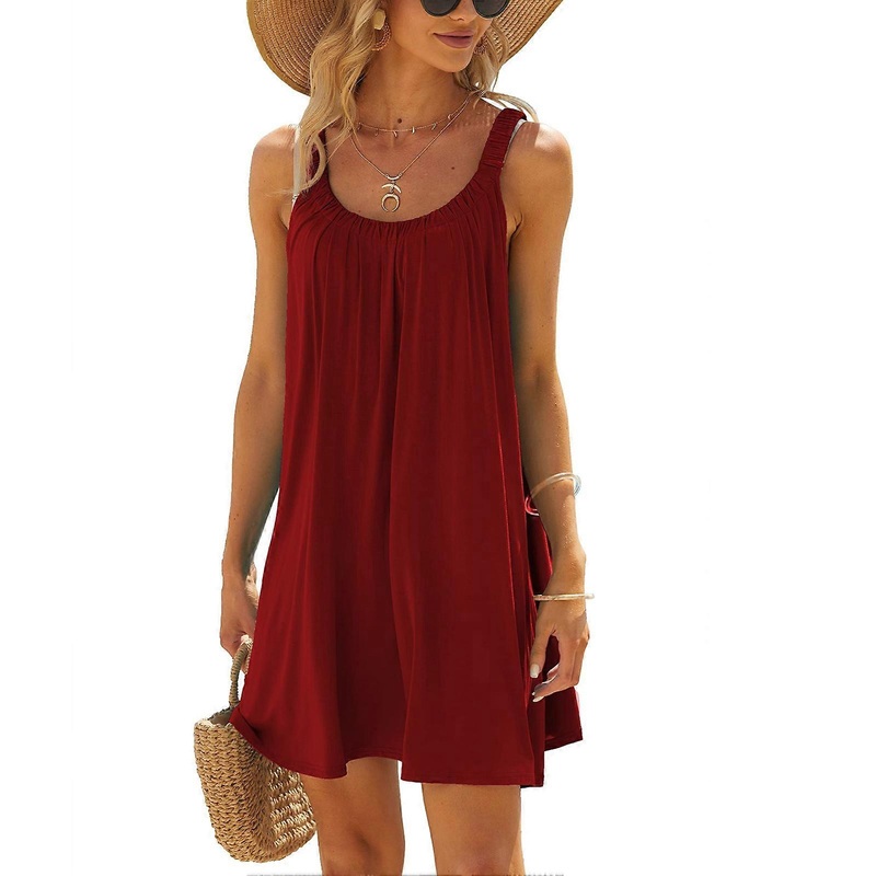 Be the first to review “Women Crewneck Pleated Tank Dress Summer Casual Fashionable Elegant Beach Sleeveless Dress for Party Burgundy S | Fruugo SG”