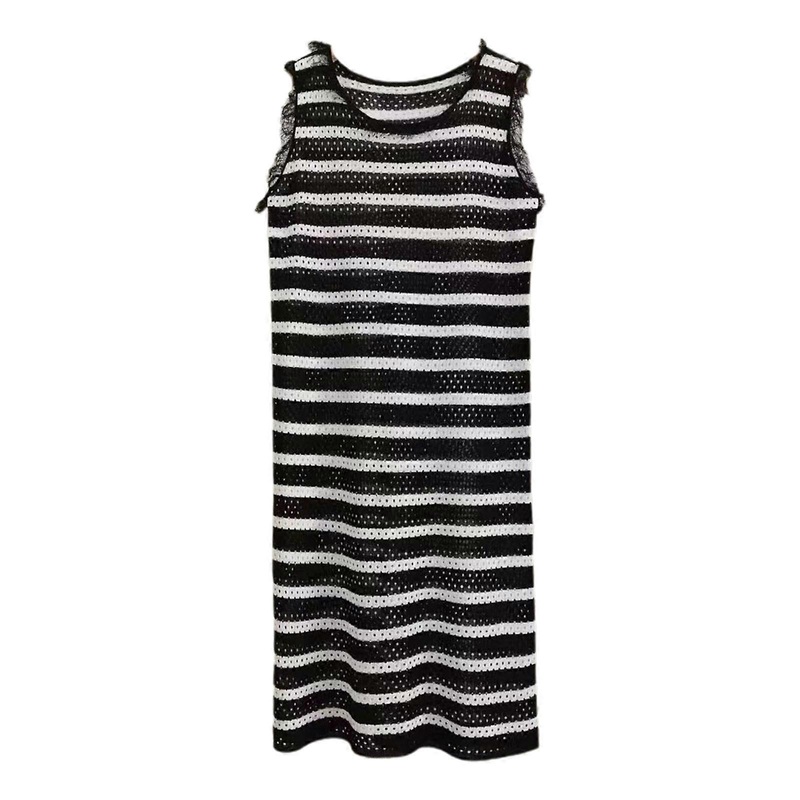 Women Crochet Tank Dress Loose Casual Summer Vest Dress Sleevless Knit Dress Knit Striped Dress Crochet Midi Dress Black and White One Size | Fruugo SG