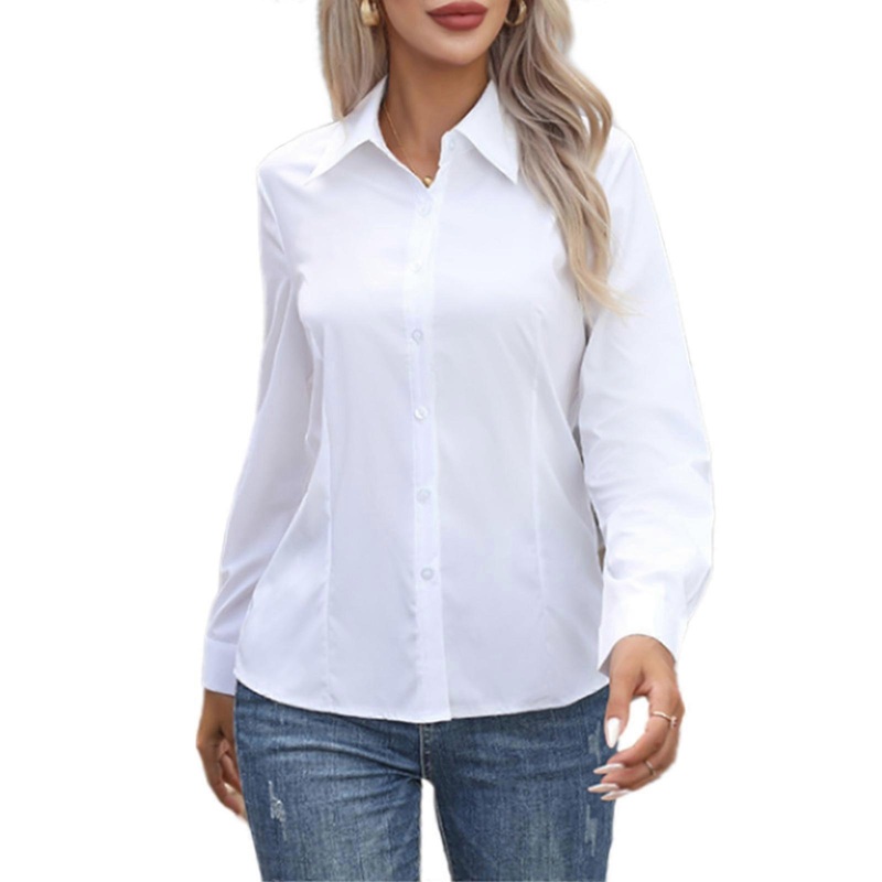 Elegant, plain solid color, collared neck, regular fit shirt Blouse for women, for work formal business.
