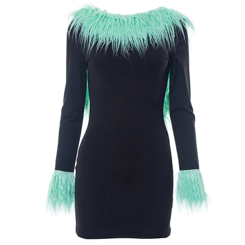 Description Features: Material,polyester material,soft,lightweight breathable. Features long sleeve,backless,faux furs collar,slim fitted bodycon dress,package hip,mini short dress. Occasions,party,wedding,prom,cocktail,evening, club, bar or casual etc Won