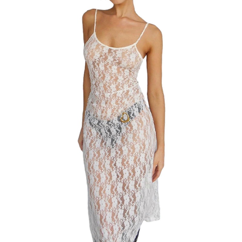 Women Floral Lace See Through Bodycon Long Dress Spaghetti Strap Lace-Up Backless Sleeveless Cami Slip Dress Beachwear White S | Fruugo SG