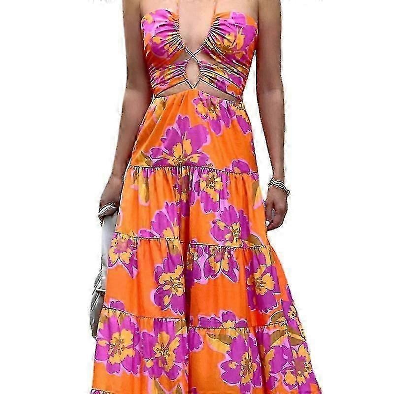 Women Girls Dress Trendy Fashion Printed Sexy Hollow-out Cinched Slimming Sling Maxi Women | Fruugo SG