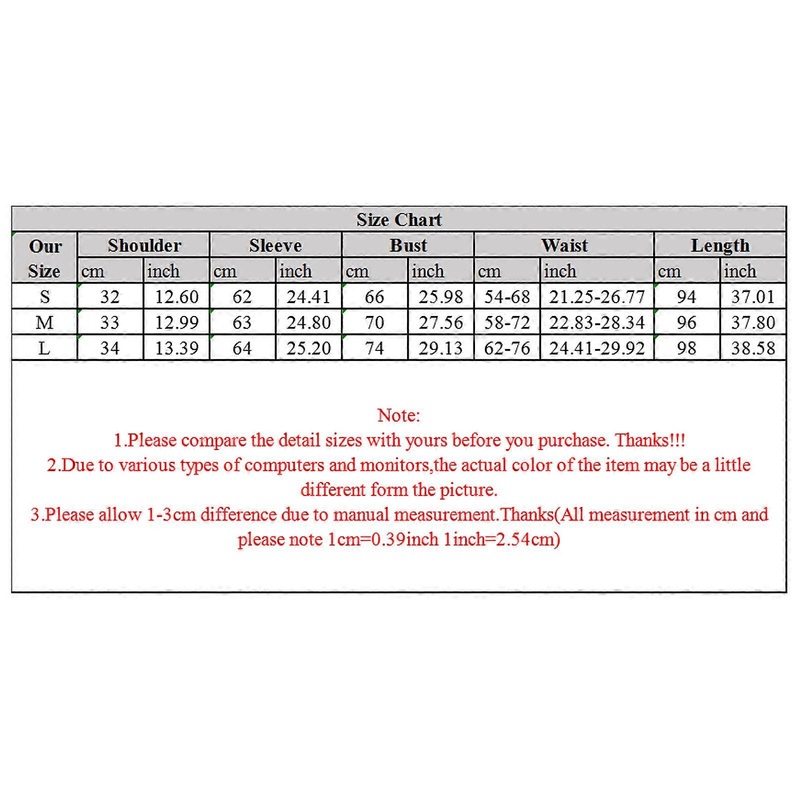 [“brand new and high quality\nFeatures:\n\nLong sleeves with thumb hole, round neckline, pull-on closure, ribbed striped, solid black color dress.\nHarajuku gothic punk style, sexy hollow out holes and backless, with thigh ring, above knee mini length.\nSexy pacakge hip, bodycon slim fitting, elastic high waist, match with for jacket, coat, cardigan, heels, etc.\nMade of high quality polyester material, light weight, stretchy, skin-friendly, soft and comfortable to wear.\nSuitable for night club, party, night out, cocktail, club, dating, homecoming, daily wear, special occasions, etc.\n1 dress only, other accessories demo in the picture are not included!\n\nSpecification:\nMaterial: Polyester\nColor: Black\nSize: S/for M/L(Chinese Size,follow the size chart to select please)\nSize:S\tShoulder:32cm(12.59inch)\tSleeve:62cm(24.41inch)\tBust:70cm-86cm(27.55inch-33.85inch)\tWaist:54cm-68cm(21.25inch-26.77inch)\tHip:74cm-90cm(29.13inch-35.43inch)\tLength:76cm(29.92inch)\nSize:M\tShoulder:33cm(12.99inch)\tSleeve:63cm(24.80inch)\tBust:74cm-90cm(29.13inch-35.43inch)\tWaist:58cm-72cm(22.83inch-28.34inch)\tHip:78cm-94cm(30.71inch-37.01inch)\tLength:78cm(30.71inch)\nSize:L\tShoulder:34cm(13.38inch)\tSleeve:64cm(25.19inch)\tBust:78cm-94cm(30.71inch-37.01inch)\tWaist:62cm-76cm(24.41inch-29.92inch)\tHip:82cm-98cm(32.28inch-38.58inch)\tLength:80cm(31.49inch)\nQuantity: 1 pc \n\nWarm prompt:\n1.Asian people size is 1 or 2 sizes smaller than European and American.\n2.Please note that low temperature washed,do not decolorize and place under the blazing for sun for quite a long for time.\n3.As different measuring methods,it will occur 1-3 for cm deviation about the items,please ensure that it is okay for you before ordering.\n4.Because of different monitors and lamplight,the picture may not reflect the actual color of the item,really thank you for your kind understanding!\n \nPackage includes:\u007F\n1 x Dress(without retail package)”]