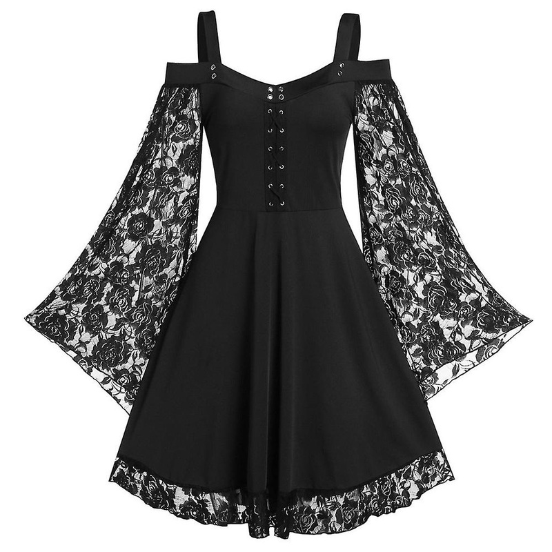 Featuring cold shoulder with lace hem, add fashion elements to this dress.