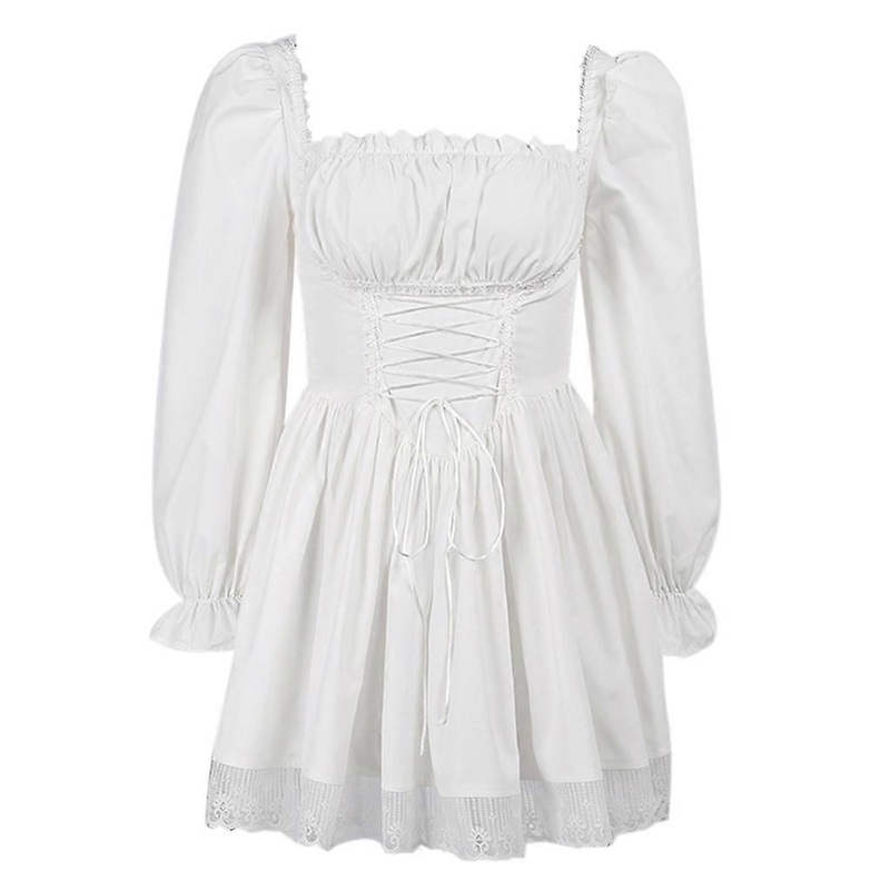 [“Features:\nbrand new and high quality\nLong puff sleeve with large hemline, square neck, gothic lolita mini dress, a-line lace trim large swing hem.\nGothic punk style ruched puffy, criss-cross lace-up bandage design at waist, high waisted, shirred elastic at back.\nMade of high quality polyester material, soft, comfortable, breathable, skin-friendly, comfy to for touch and wear.\nAbove knee mini length, sweet style shows your unique personal charm and produces a fitted visual effect.\nSimple and plain design can be easily dress up and dress down, perfect to match with your heels in summer.\nPunk style kawaii puffy mini dress is suitable for date, party, church, beach wedding, prom, cocktail, holiday, school, daily life, etc.\n1 dress only, other accessories demo in the picture are not included!\n\nSpecification:\nMaterial: Polyester\nOptional Color: Black, White\nSize: S/for M(Chinese Size,follow the size chart to select please)\nSize:S\tBust:68cm-88cm(26.77inch-34.64inch)\tWaist:66cm-72cm(25.98inch-28.34inch)\tSleeve:64cm(25.19inch)\tLength:76cm(29.92inch)\nSize:M\tBust:72cm-92cm(28.34inch-36.22inch)\tWaist:70cm-76cm(27.55inch-29.92inch)\tSleeve:65cm(25.59inch)\tLength:78cm(30.71inch)\nQuantity: 1 pc \n\nWarm prompt:\n1.Asian people size is 1 or 2 sizes smaller than European and American.\n2.Please note that low temperature washed,do not bleach and place under the blazing for sun for quite a long for time.\n3.As different measuring methods,it will occur 1-3 for cm deviation about the items,please ensure that it is okay for you before ordering.\n4.Because of different monitors and lamplight,the picture may not reflect the actual color of the item,really thank you for your kind understanding!\n \nPackage includes:\u007F\n1 x Dress(without retail package)”]