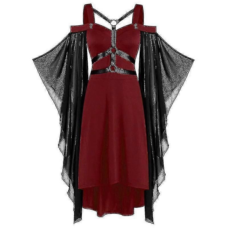 Description Description: Theme: Halloween Feature: Mesh Flared Sleeve, Irregular, Cold Shoulder Sleeve, Straps Material: Polyester Package Included: 1 x Women's Dress