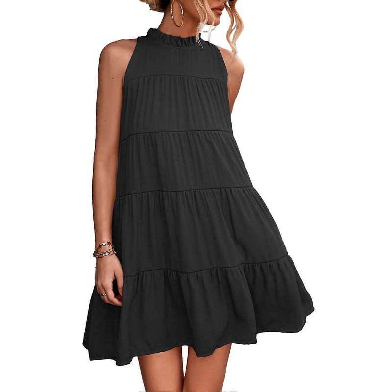 Women High Neck Sleeveless Dress A Line Swing Casual Dress Halter Neck Tie Back Dress for Women Black XL | Fruugo SG