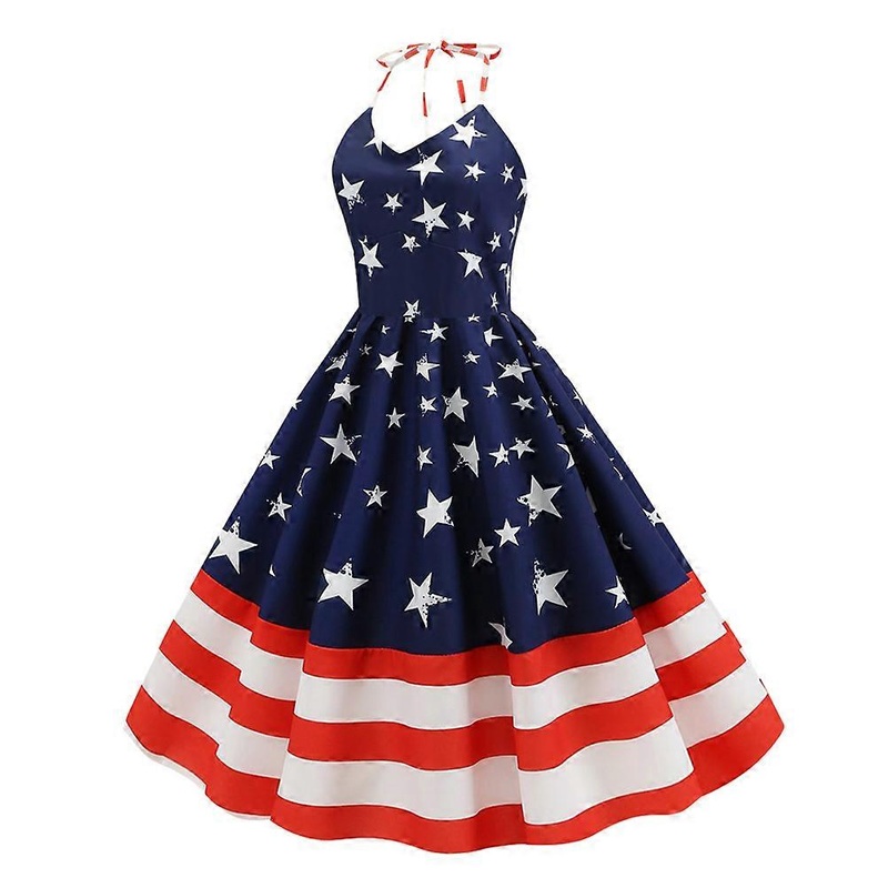 Description Fashion star and stripe dress is comfortable and breathable. It is made of material which makes it and comfortable to wear. In this dress, you will look charming. Independence Day design is attractive and beautiful. Feature - - Material: Cloth.