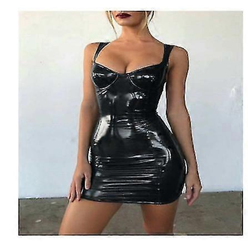 Brand Name: hiriginSleeve Style: Spaghetti StrapSilhouette: SheathNeckline: StraplessDecoration: NONEStyle: Sexy & ClubDresses Length: Above Knee, MiniMaterial: Synthetic LeatherOrigin: CN(Origin)Type: RegularFabric Type: LeatherWaistline: Natural FactorsPattern Type: SolidSleeve Length(cm): SleevelessSeason: SummerModel Number: DressGender: WOMEN