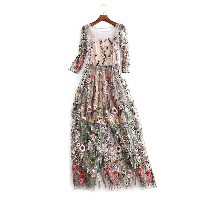 Women Long Floral Embroidered Dress Half Sleeve Tulle Dress Elegant Slim Waist Dress Size XXL | Fruugo SG