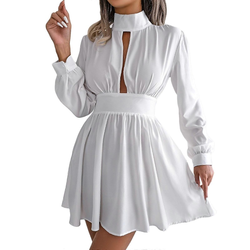 Women Long Sleeve O-Neck Short Dress Fashion Flowy Mini A-Line Dress High Waist Casual Dress Loose Fit Babydoll Dress White S | Fruugo SG