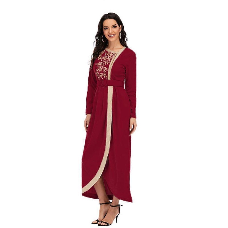 Women Muslim Maxi Wrap Dress Embroidery Applique Beaded Islamic Abaya Gown Robe Red XL | Fruugo SG