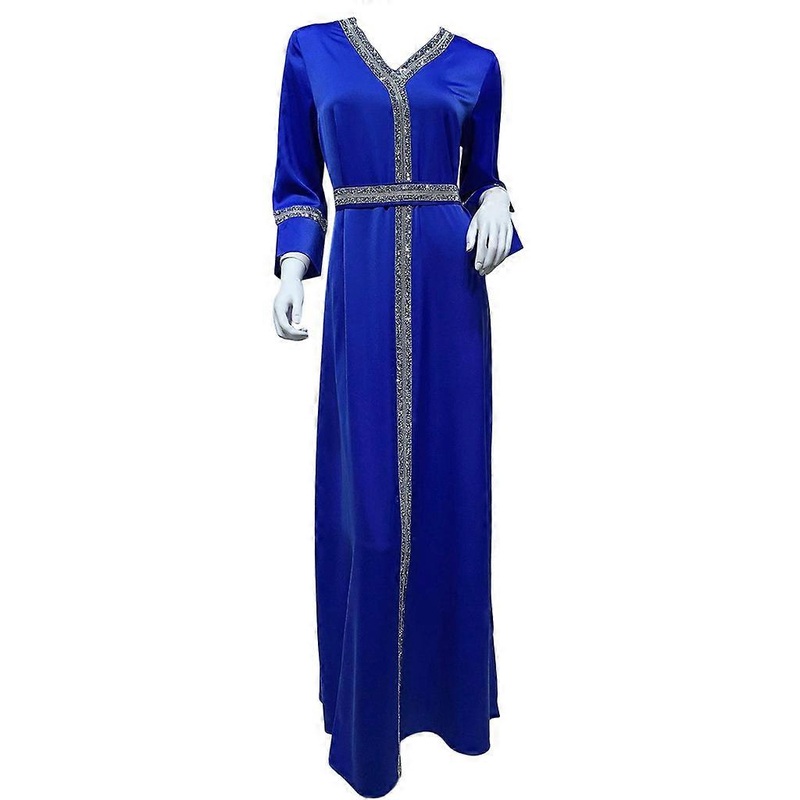 Women Muslim Satin Maxi Dress for Rhinestone Belted Waist Turkey Arabic Long Robe V-Neck 3/4 Sleeves Islamic Ethnic Dubai Vintage Kaftan M Royal blue | Fruugo SG