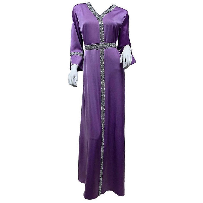 [“Description: \n\nFeatures:\nbrand new and high quality\n3/4 flared sleeves, slit cuffs, sexy V neckline, casual pull-on closure, loose fitting, maxi long dress. \nSolid color, glitter for rhinestone decoration, with detachable and adjustable waist belt, high waisted.\nMade of high quality polyester, silky smooth, skin-friendly, soft, breathable, comfortable to wear.\nfor Ideal for everyday wear, church, brunch and traveling, and other occasions. Modest and unique.\nThis dress completely covers your privacy. Great gift for mother, wife, sister, girlfriend, friend, or anyone you love.\n1 dress+waist belt only, other accessories demo in the picture are not included!\n\nSpecification:\nMaterial: Polyester\nOptional Color: Purple, Royal Blue\nSize: S/for M/L(Chinese Size,follow the size chart to select please)\nSize:S\tLength:140cm(55.12inch)\tBust:50cm(19.68inch)\tSleeve:47.5cm(18.70inch)\tShoulder:40cm(15.74inch)\nSize:M\tLength:140cm(55.12inch)\tBust:52.5cm(20.66inch)\tSleeve:47.5cm(18.70inch)\tShoulder:41.3cm(16.25inch)\nSize:L\tLength:140cm(55.12inch)\tBust:55cm(21.65inch)\tSleeve:47.5cm(18.70inch)\tShoulder:42.5cm(16.73inch)\nQuantity: 1 set\n\nWarm prompt:\n1.Asian people size is 1 or 2 sizes smaller than European and American.\n2.Please note that low temperature washed,do not bleach and place under the blazing for sun for quite a long for time.\n3.As different measuring methods,it will occur 1-3 for cm deviation about the items,please ensure that it is okay for you before ordering.\n4.Because of different monitors and lamplight,the picture may not reflect the actual color of the item,really thank you for your kind understanding!\n \nPackage includes:\u007F\n1 x Dress\n1 x Waist Belt\n(without retail package)”]