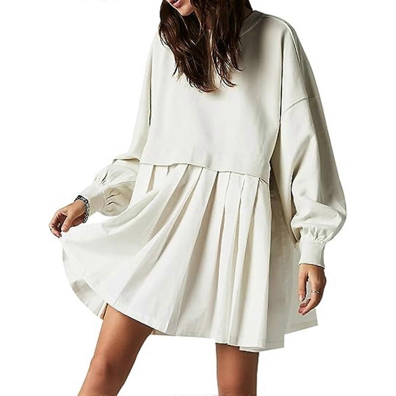 Description Features: Brand new and high quality Stay stylish and comfortable with the Women Oversized Sweatshirt Mini Dress. This casual puff sleeve pleated mini dress is perfect for women who love a relaxed yet fashionable look. Made from a soft and dura