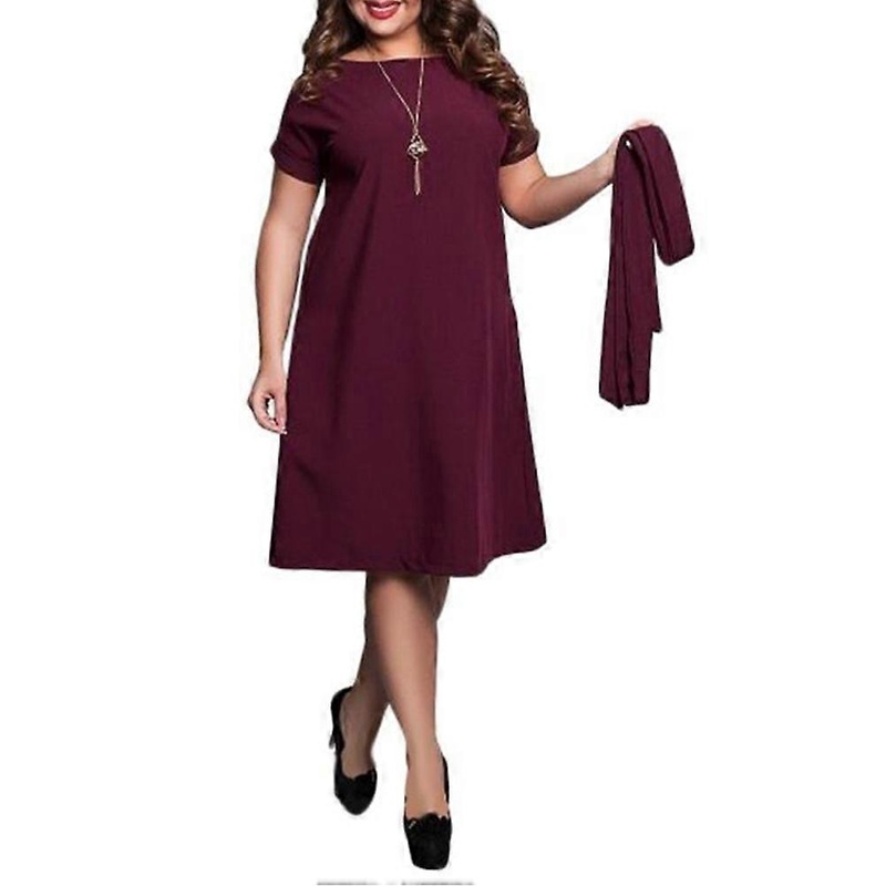 Package list: 1 x set of Plus Size High Waist Women Dress Belted Casual Dress Summer Dress Loose Waist Knee Length (Dark Red)