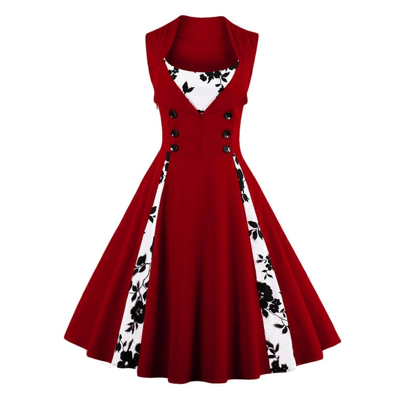 [“Description: \n\nFeatures:\nbrand new and high quality\nSleeveless, scoop neckline, fashionable imitation open-necked design on the bust.\nDecorative turn-down collar, contrast color patchwork, vintage floral print.\nWith button accents on the front waist, concealed zipper closure at side.\nfor Tank top style, empire high waist, pleated flared swing hemline, midi long dress.\nMade of high quality cotton blend material, soft, skin-friendly, comfortable to wear.\nGreat choice for cocktial, evening, prom, birthday, tea party, daily, dating,, banquet, wedding guest, or formal occasions.\n1 dress only, other accessories demo in the picture are not included!\n\nSpecification:\nMaterial: Cotton Blend\nOptional Color: Wine Red, Light Blue, Pink, Red\nSize: S/for M/L/XL/2XL/3XL/4XL/5XL(Chinese Size,follow the size chart to select please)\nSize:S\tLength:100cm(39.37inch)\tBust:88cm(34.64inch)\tWaist:68cm(26.77inch)\tShoulder:36cm(14.17inch)\nSize:M\tLength:101cm(39.76inch)\tBust:93cm(36.61inch)\tWaist:73cm(28.74inch)\tShoulder:37cm(14.56inch)\nSize:L\tLength:102cm(40.15inch)\tBust:98cm(38.58inch)\tWaist:78cm(30.71inch)\tShoulder:38cm(14.96inch)\nSize:XL\tLength:103cm(40.55inch)\tBust:103cm(40.55inch)\tWaist:83cm(32.67inch)\tShoulder:39cm(15.35inch)\nSize:2XL\tLength:104cm(40.94inch)\tBust:108cm(42.51inch)\tWaist:88cm(34.64inch)\tShoulder:40cm(15.74inch)\nSize:3XL\tLength:105cm(41.33inch)\tBust:113cm(44.48inch)\tWaist:93cm(36.61inch)\tShoulder:41cm(16.14inch)\nSize:4XL\tLength:106cm(41.73inch)\tBust:118cm(46.45inch)\tWaist:98cm(38.58inch)\tShoulder:42cm(16.53inch)\nSize:5XL\tLength:107cm(42.12inch)\tBust:123cm(48.42inch)\tWaist:103cm(40.55inch)\tShoulder:43cm(16.92inch)\nQuantity: 1 pc \n\nWarm prompt:\n1.Asian people size is 1 or 2 sizes smaller than European and American.\n2.Please note that low temperature washed,do not bleach and place under the blazing for sun for quite a long for time.\n3.As different measuring methods,it will occur 1-3 for cm deviation about the items,please ensure that it is okay for you before ordering.\n4.Because of different monitors and lamplight,the picture may not reflect the actual color of the item,really thank you for your kind understanding!\n \nPackage includes:\u007F\n1 x Dress(without retail package)”]