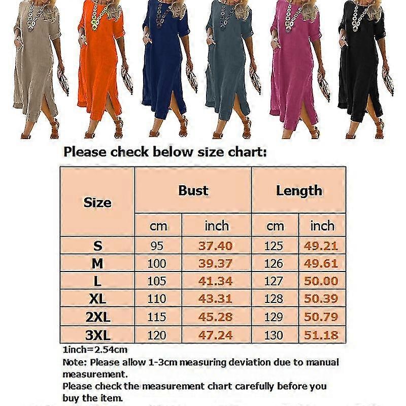 Description Gender: Women Woman, Ladies Lady, FemaleStyle: Women Midi Dress, Casual Long Dresses, Summer Sundress, Bohemian DressesPattern Type: Solid ColorColor: Khaki, Blue, Black, Orange, Gray (Optional)Size: S, M, L, XL, XXL, 3XL (Follow the size chart