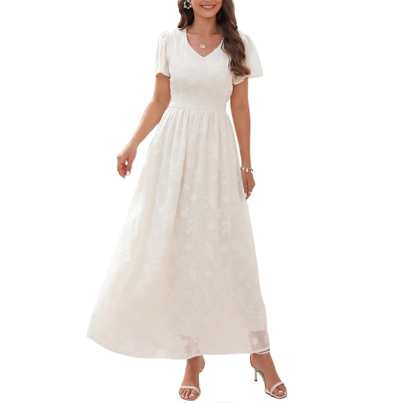 Description Features: brand new and high quality Quality polyester material, lightweight, skin-friendly, soft and comfortable to wear. Ruffle short sleeves, sexy v-neckline, shirred elastic smocked waist, pull-on closure. Solid color, elegant floral jacqua