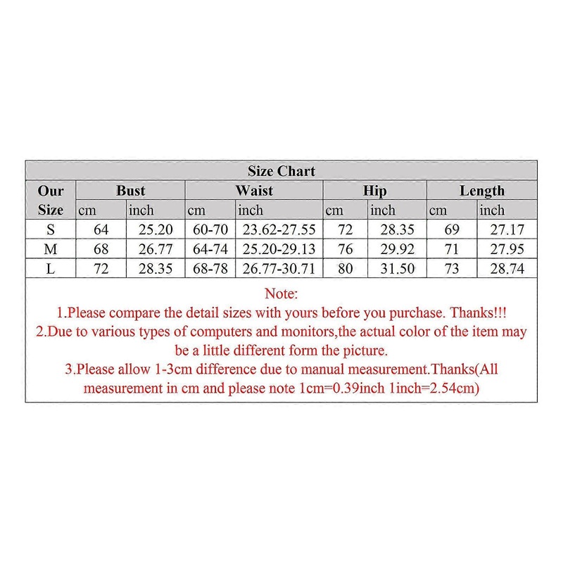 [“Description: \n\nFeatures:\nbrand new and high quality\nSleeveless, sexy strapless off shoulder and backless, casual pull-on closure, above knee mini length.\nSexy package hip, bodycon fit, elastic high waist, to make a comfortable fit, curve your waist perfectly.\nYou can pair with for jacket, coat, pantyhose, ankle boots, sandals, high heels to make a chic look.\nMade of high quality polyester, soft, stretchy, breathable, provides exceptional comfort and durability.\nGreat for party, date, banquet evening, cocktail party, night club, daily wear or any other occasions.\n1 dress only, other accessories demo in the picture are not included!\n\nSpecification:\nColor: Black\nMaterial: Polyester\nSize: S/for M/L(Chinese Size,follow the size chart to select please)\nSize:S\tBust:64cm(25.2inch)\tWaist:60cm-70cm(23.62inch-27.55inch)\tHip:72cm(28.35inch)\tLength:69cm(27.16inch)\nSize:M\tBust:68cm(26.77inch)\tWaist:64cm-74cm(25.19inch-29.13inch)\tHip:76cm(29.92inch)\tLength:71cm(27.95inch)\nSize:L\tBust:72cm(28.35inch)\tWaist:68cm-78cm(26.77inch-30.71inch)\tHip:80cm(31.5inch)\tLength:73cm(28.74inch)\nQuantity: 1 pc \n\nWarm prompt:\n1.Asian people size is 1 or 2 sizes smaller than European and American.\n2.Please note that low temperature washed,do not bleach and place under the blazing for sun for quite a long for time.\n3.As different measuring methods,it will occur 1-3 for cm deviation about the items,please ensure that it is okay for you before ordering.\n4.Because of different monitors and lamplight,the picture may not reflect the actual color of the item,really thank you for your kind understanding!\n \nPackage includes:\n1 x Dress(without retail package)”]