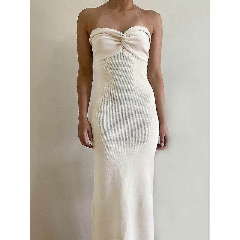 Women Sexy Hollow Out Twist Front Strapless Bodycon Dress Sleeveless Solid Color Backless Tube Knitted Long Dress Party Clubwear | Fruugo SG