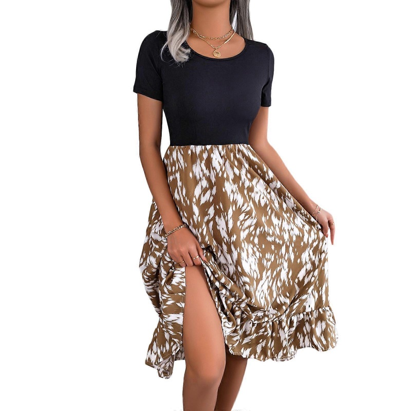 Women Short Sleeves Dress Summer Ruffle Hem A-Line Dress Casual Holiday Dress Leopard Print Dress Female Crew Neck Dress Khaki XL | Fruugo SG