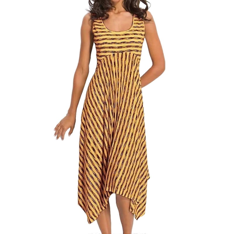 Women Sleeveless Swing Dress Irregular Hem Midi Dress Casual T-Shirt Dress Tank Dress Summer Dress Striped Midi Dress Yellow XL | Fruugo SG