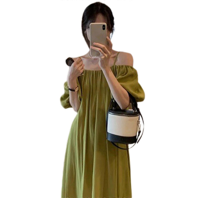 Women Spaghetti Strap Dress Female Solid Color Dress Sexy Off Shoulder Dress Loose Party Dress Holiday Dress for Summer Green XL | Fruugo SG