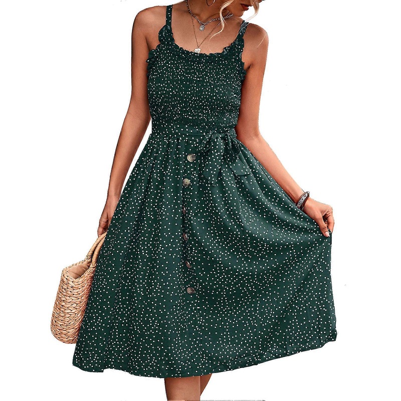 Item Type: Women Strap DressMaterial: 95% Polyester Fiber, 5% PolyurethaneCleaning: Hand wash, machine washStyle Characteristics: Strap design, ruchedbust, button front, floral dresses. With waist belt, and medi length.Scene: Suitable for summer and fall everyday wear, you can wear it to go out with friends, drink, go on vacation, party with friends, walk on the beach, etc. Size:S: Length: Approx. 99cm / 38.98in, Bust: Approx. 60-144cm / 23.62-56.69in, Waist: Approx. 60-144cm / 23.62-56.69in, Weight: Approx. 210g / 7.41ozM: Length: Approx. 100.5cm / 39.57in, Bust: Approx. 64-148cm / 25.20-58.27in, Waist: Approx. 64-148cm / 25.20-58.27in, Weight: Approx. 220g / 7.76ozL: Length: Approx. 102cm / 40.16in, Bust: Approx. 68-152cm / 26.77-59.84in, Waist: Approx. 68-152cm / 26.77-59.84in, Weight: Approx. 230g / 8.11ozXL: Length: Approx. 103.5cm / 40.75in, Bust: Approx. 72-156cm / 28.35-61.42in, Waist: Approx. 72-156cm / 28.35-61.42in, Weight: Approx. 240g / 8.47oz