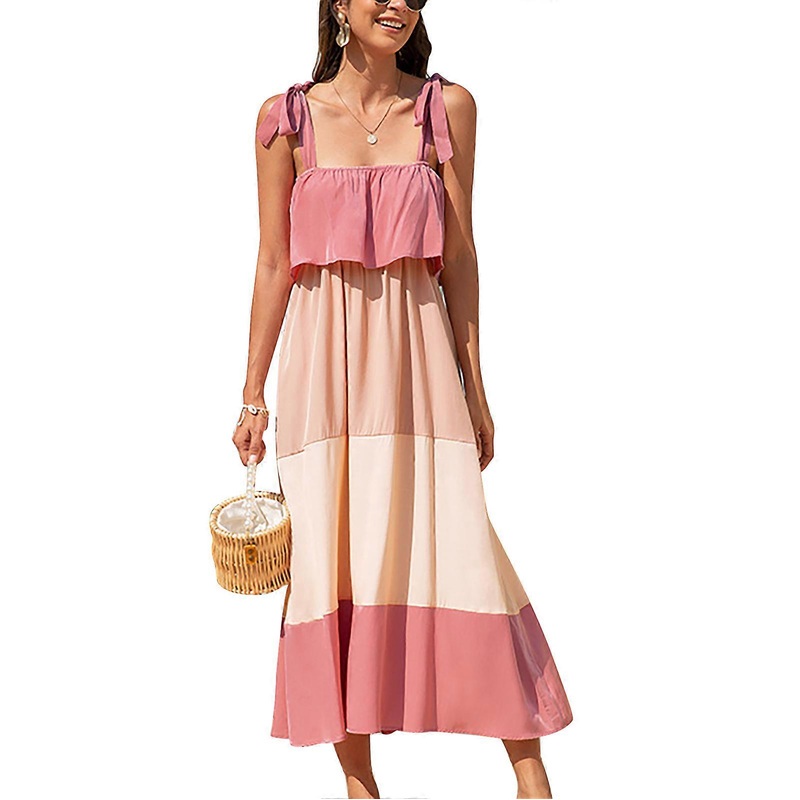 Item Type:ColorblockBeachDressMaterial:PolyesterFeature: Shoulder strap, colorblock, loose hem