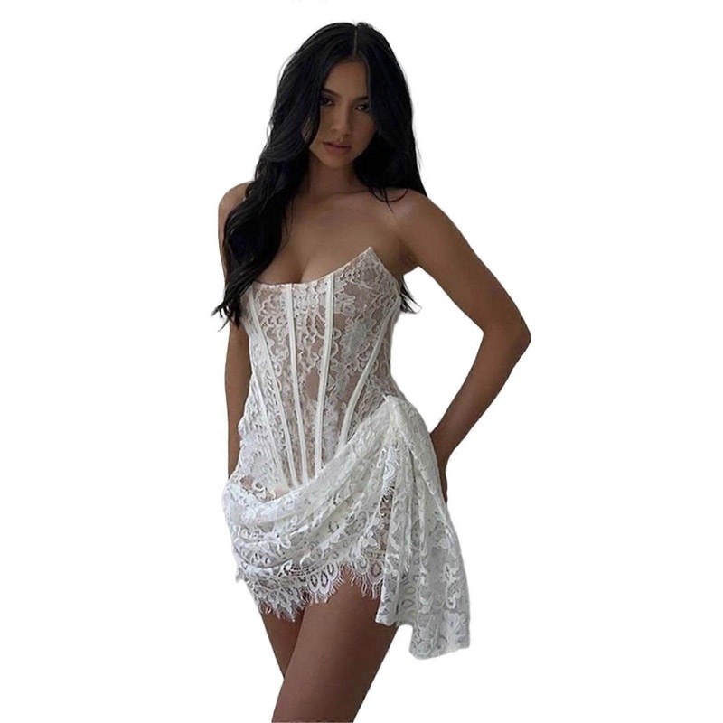 Description Features: Brand new and high quality Highlight your stunning collarbone with this trendy strapless dress, designed to enhances your figure and create a charming look. Made from a lightweight and slightly transparent fabric, this dress adds char