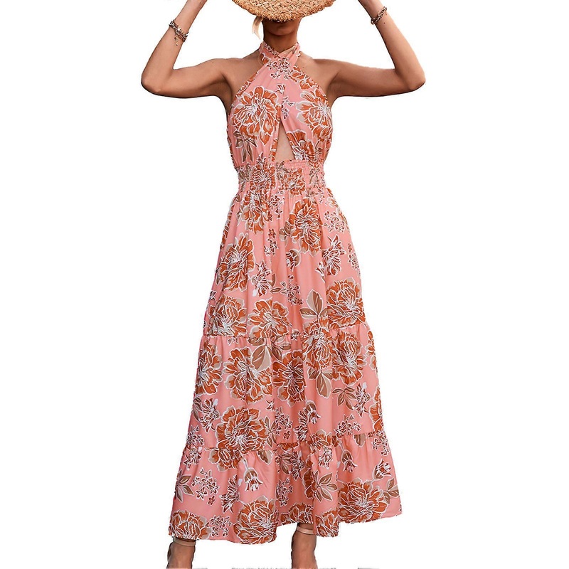 Item Type: Women Maxi DressMaterial: 95% Polyester Fiber, 5% PolyurethaneCleaning: Machine wash, do not bleachStyle Characteristics: Ladies casual printed dress, crossover halter neck design, backless, stylish and lovely. Simple, random maxi length printed dress is made of 95% polyester fiber and 5% polyurethane, soft and elastic, making it light and perfect for summer weather. Scene: Perfect for summer, wear this outfit for casual evenings such as drinks with friends, hair styling and makeup, graduation parties and beach walks. They are very comfortable and can be worn at home and are suitable for office work. You can easily match it with any jewelry, sandals, high heels, flip flops or even sneakers. Size:S: Back Length: 98cm / 38.58in, Waist: 60cm / 23.62in, Weight: 305g / 10.76oz.M: Back Length: 99cm / 38.98in, Waist: 64cm / 25.20in, Weight: 315g / 11.11oz.L: Back Length: 100cm / 39.37in, Waist: 68cm / 26.77in, Weight: 325g / 11.46oz.XL: Back Length: 101cm / 39.76in, Waist: 72cm / 28.35in, Weight: 335g / 11.82oz.