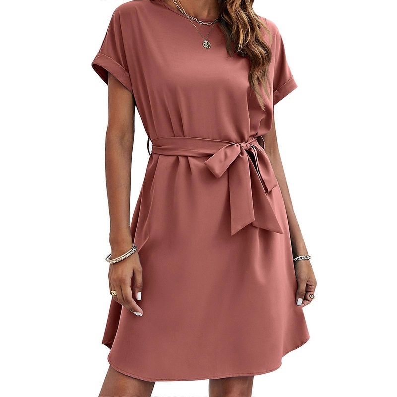 Description Features: Round neck dress, waist tied, solid color, above knee length, short sleeve dress adds some sexy and charm to you, and the charming slim dress perfectly shows your figure curves. Made of lightweight, skin friendly fabric, soft and comf