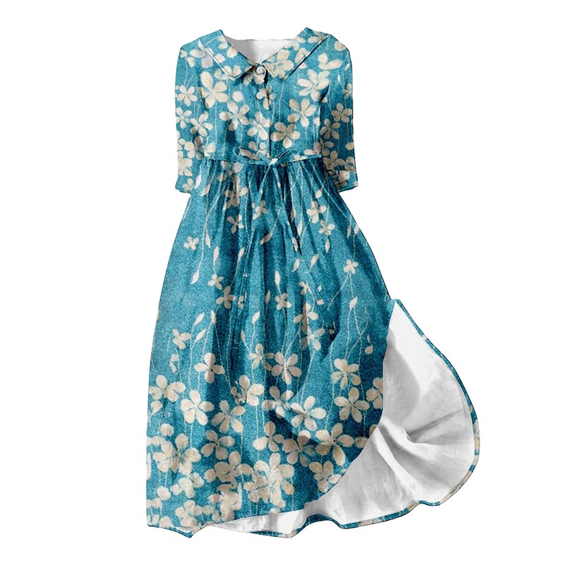 Description Elevate your summer wardrobe with this stunning Women's Dress featuring a chic lapel design and single-breasted decoration, exuding a retro charm that is sure to turn heads at any event.Embrace the season in style with this floral A-line dress,