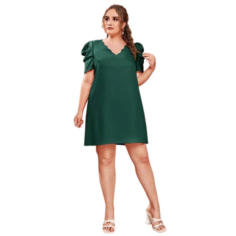 [“Features:\nbrand new and high quality\nPleated ruched puff short sleeve, sexy v neck, sclloped trim at neckline, casual pull-on closure.\nMidi long dress, above knee length, loose fitting, simple plain solid color, A-line style, flared hemline.\nMade of high quality polyester, soft, lightweight, skin-friendly, breathable and comfortable to wear.\nJust paired with your sandal or heels, wedges, boots and a layered necklace to complete the look.\nThe dress is perfect for any daily casual & formal occasions all day long: party, work, etc.\n1 dress only, other accessories demo in the picture are not included!\n\nSpecification:\nMaterial: Polyester\nColor: Green\nSize: XL/2XL/3XL/4XL(Chinese Size,follow the size chart to select please)\nSize:XL\tBust:112cm(44.09inch)\tWaist:112cm(44.09inch)\tSleeve:39cm(15.35inch)\tLength:91cm(35.82inch)\nSize:2XL\tBust:118cm(46.45inch)\tWaist:118cm(46.45inch)\tSleeve:40cm(15.74inch)\tLength:93cm(36.61inch)\nSize:3XL\tBust:124cm(48.81inch)\tWaist:124cm(48.81inch)\tSleeve:41cm(16.14inch)\tLength:94cm(37.01inch)\nSize:4XL\tBust:132cm(51.96inch)\tWaist:132cm(51.96inch)\tSleeve:41.4cm(16.29inch)\tLength:96cm(37.79inch)\nQuantity: 1 pc \n\nWarm prompt:\n1.Asian people size is 1 or 2 sizes smaller than European and American.\n2.Please note that low temperature washed,do not bleach and place under the blazing for sun for quite a long for time.\n3.As different measuring methods,it will occur 1-3 for cm deviation about the items,please ensure that it is okay for you before ordering.\n4.Because of different monitors and lamplight,the picture may not reflect the actual color of the item,really thank you for your kind understanding!\n \nPackage includes:\u007F\n1 x Dress(without retail package)”]