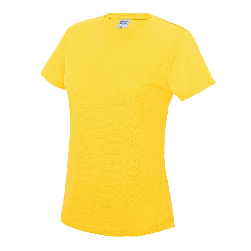 This classic Cool T is cut to a feminine fit integrating form and function to unlock your fitness potential. Crafted from a lightweight Neoteric\u0099 fabric to wick sweat away from your skin. With a self-fabric crew neck and cap sleeves, its non-restrictive design makes it an essential for your activewear wardrobe.